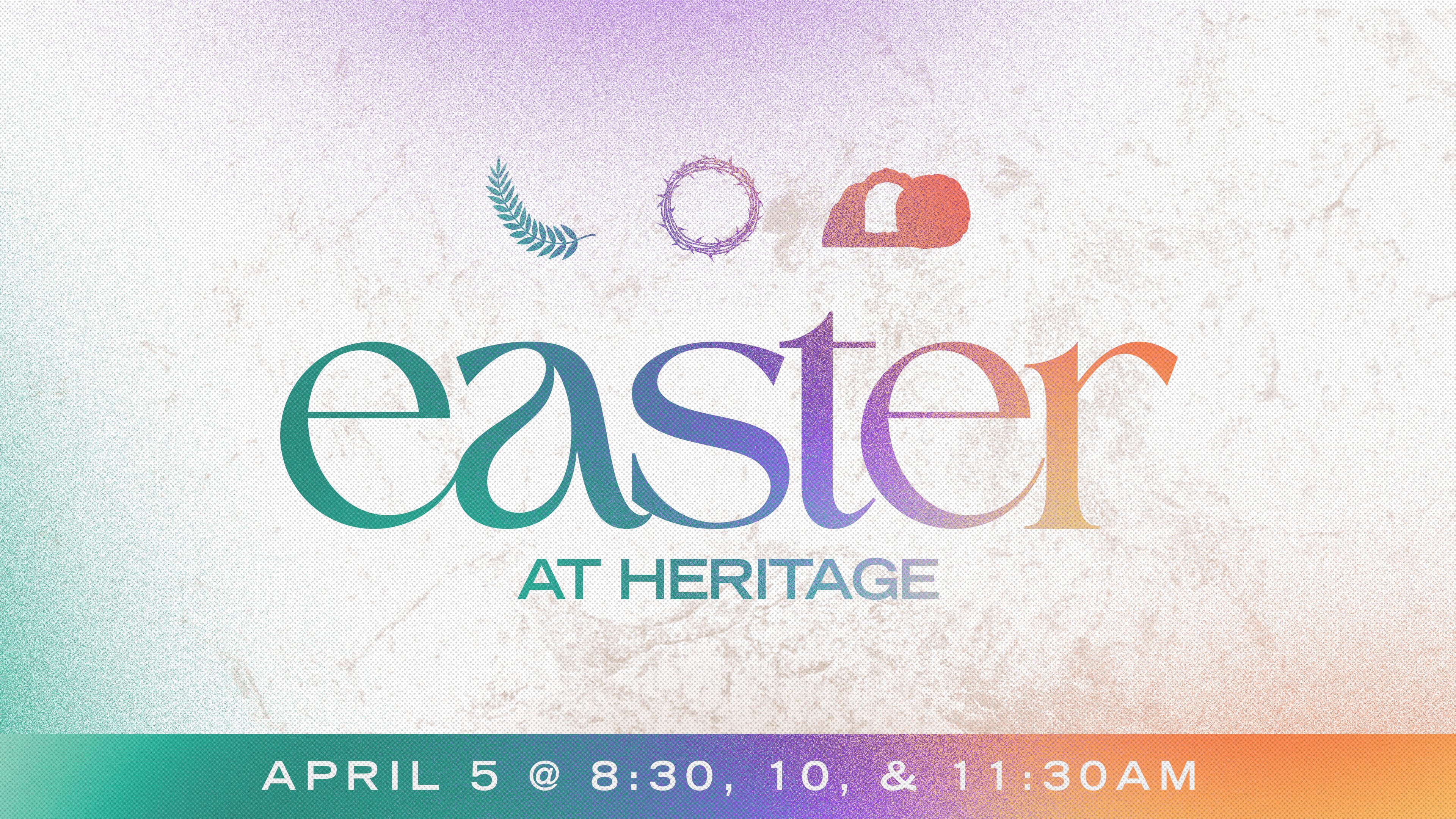 Celebrate Easter at Heritage on April 5th! Join us for powerful worship, a Christ-centered message, and a welcoming community. Services at 8:30, 10:00, & 11:30 AM, with a special egg hunt for kids after each service.
